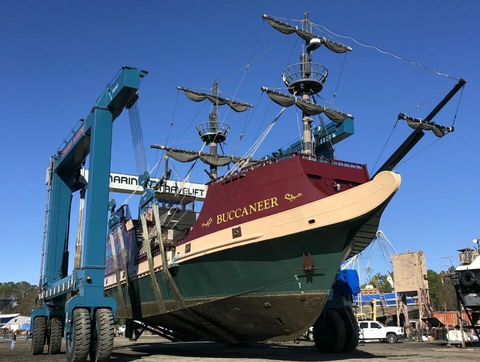 Added to the yard in 2019 to replace a smaller one, the travel lift give the shipyard a unique advantage by quickly lifting large boats out of the water for repairs or safe harbor.